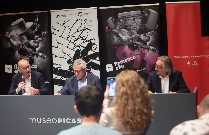 La VIII Bienal de Arte Flamenco de Málaga de la Diputación acogerá FlamaencoEÑE 2023 de la Fundación SGAE del 24 al 26 de mayo. En total se celebrarán doce conciertos con entrada gratuita cuya programación se ha presentado hoy en el Museo Picasso Málaga por parte del diputado de Cultura, Manuel López, junto al director del Museo Picasso Málaga, José Lebrero, y Juan Carmona, director institucional de Flamenco de la Fundación SGAE.