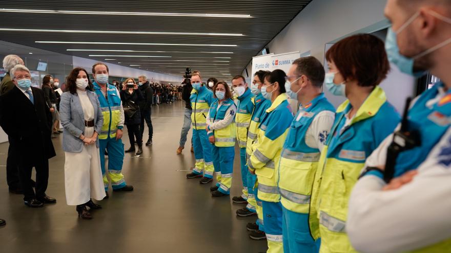 La presidenta de la Comunidad de Madrid, Isabel Díaz Ayuso, ha visitado hoy el dispositivo de vacunación en el Estadio Wanda Metropolitano donde se ha comenzado a vacunar frente al COVID-19 a policías municipales, bomberos y personal de Protección Civil con la vacuna de AstraZeneca. “Todos ellos son profesionales que están en la primera línea, profesionales que nos cuidan, que nos protegen y que nos ofrecen seguridad a todos los ciudadanos cuando más lo necesitamos y, por eso, consideramos que es necesario suministrarles la vacuna cuanto antes”, ha señalado. Díaz Ayuso ha agradecido al Club Atlético de Madrid “su generosidad” por ceder las instalaciones y ha destacado la “ilusión y el optimismo” que se respira en este centro de vacunación, la “esperanza” que genera la presencia de la vacuna, cuando se cumple un año del primer ingresado por COVID-19 en la Comunidad de Madrid. Al dispositivo también han acudido los consejeros de Justicia, Interior y Víctimas, Enrique López; y de Sanidad, Enrique Ruiz Escudero. Con este nuevo punto, el Gobierno regional avanza en la Estrategia de vacunación frente al virus, tras prácticamente completar el proceso en los centros socio-sanitarios y centros sanitarios. Además, ayer comenzó la vacunación en el Hospital público Enfermera Isabel Zendal, también con AstraZeneca, a profesionales que trabajan en primera línea en la gestión de la pandemia. Así, para este dispositivo habilitado en el Estadio Wanda Metropolitano, el SUMMA 112 ha dispuesto dos puntos de filiación para los ciudadanos; ocho de vacunación doble, donde se podrá vacunar de manera simultánea a 16 personas, y 14 puestos informáticos para el registro y certificación de las dosis administradas. Con este despliegue se podrá inocular entre 350 y 400 personas a la hora.