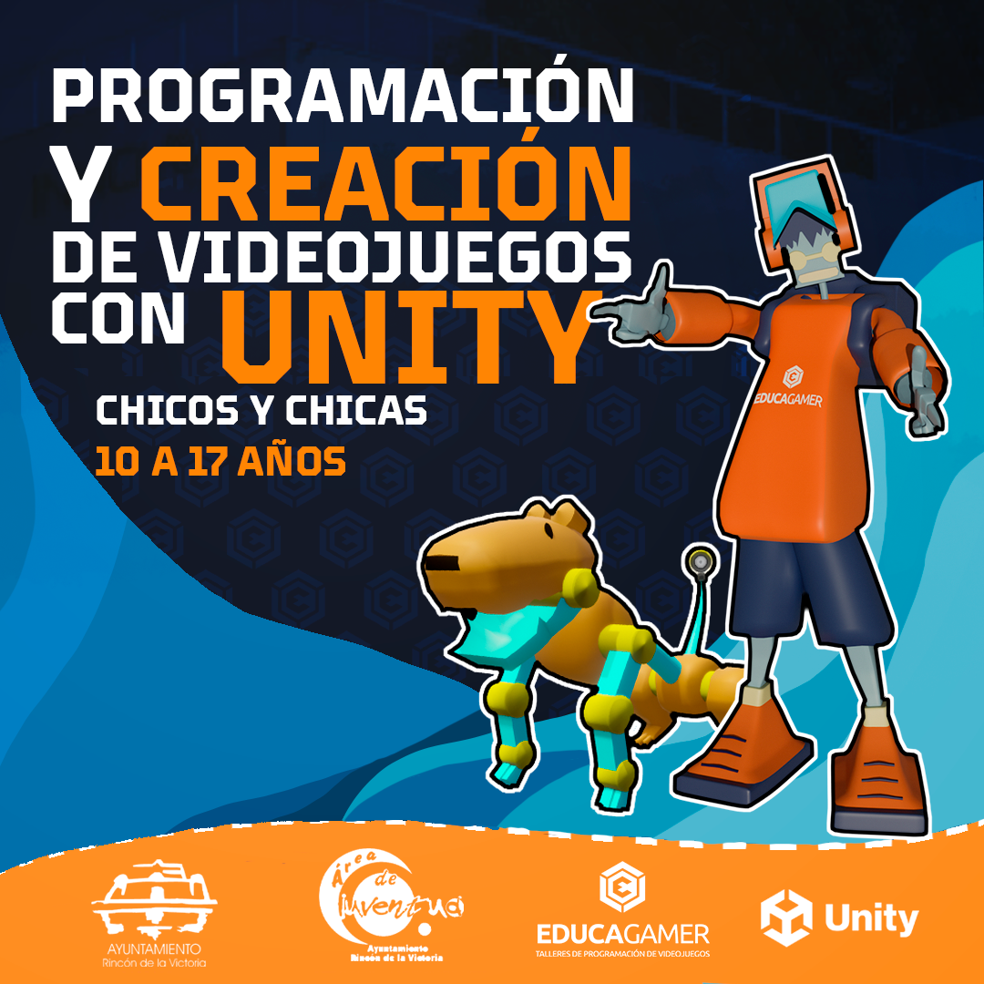 La programación y creación de videojuegos con UNITY estará enfocada a la creación de sus propios videojuegos 2D y 3D utilizando códigos de programación. No es necesario tener conocimientos previos, ya que es una iniciación a la programación y codificación. Estas clases están dirigidas a niños y niñas de entre 10 y 17 años.