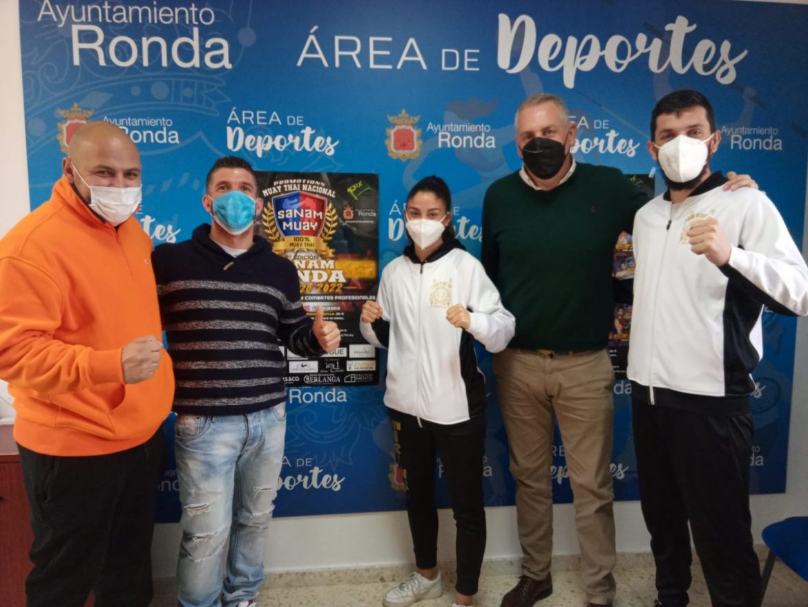 El delegado municipal de Deportes, Carlos Mirasol, junto a miembros del club ‘Lum King Ko’, ha presentado una nueva velada de ‘Sanam Muay’ que se celebrará el 19 de marzo a las 19.00 horas en el polideportivo cubierto de la carretera de El Burgo, en un evento donde habrá diez combates con algunos de los mejores deportistas de esta modalidad y con la participación de cinco miembros del club rondeño.