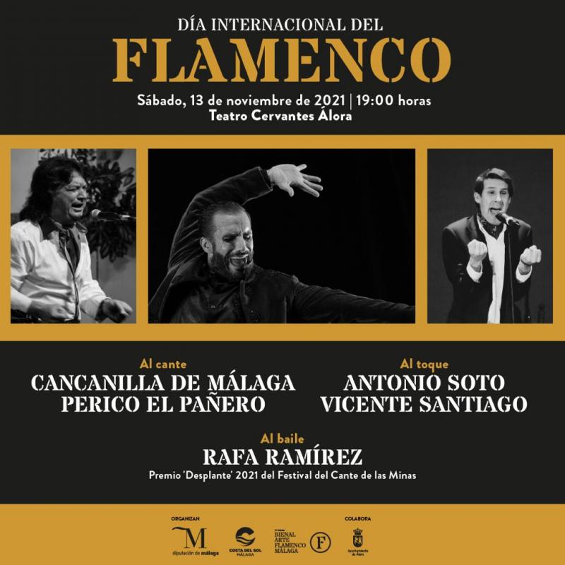 El acto principal tendrá lugar el sábado 13 de noviembre en Álora con las actuaciones de Cancanilla, Perico El Pañero y Rafa Ramírez, entre otras actividades en el municipio. Asimismo, habrá espectáculos flamencos en otras localidades, se presentará el libro de Salvador Pendón sobre cancioneros, el CEDMA editará una antología flamenca de Antonio de Canillas y se podrá visitar aún la exposición Flamencas de Pepe Sánchez Ponce y Pablo Blanes.