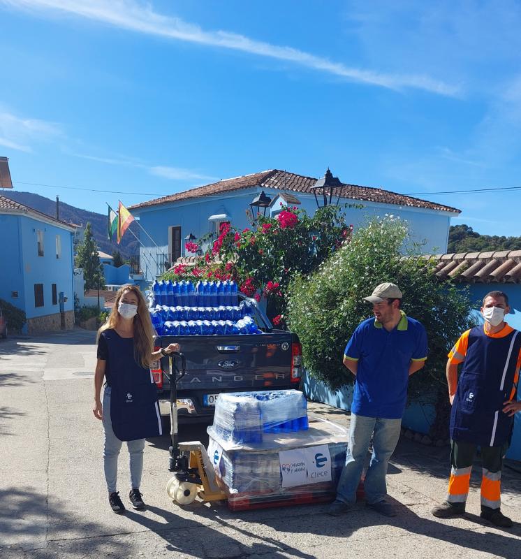 La Diputación de Málaga continúa coordinando las donaciones de agua que diferentes entidades están realizando para los vecinos de los pueblos afectados por el incendio de Sierra Bermeja, hasta que se compruebe el estado de los pozos y acuíferos y se certifique su potabilidad. Esta semana se han repartido 5.000 litros de agua que han sido donados por la ONG Corazón y Manos formada por trabajadores de la empresa Clece.
