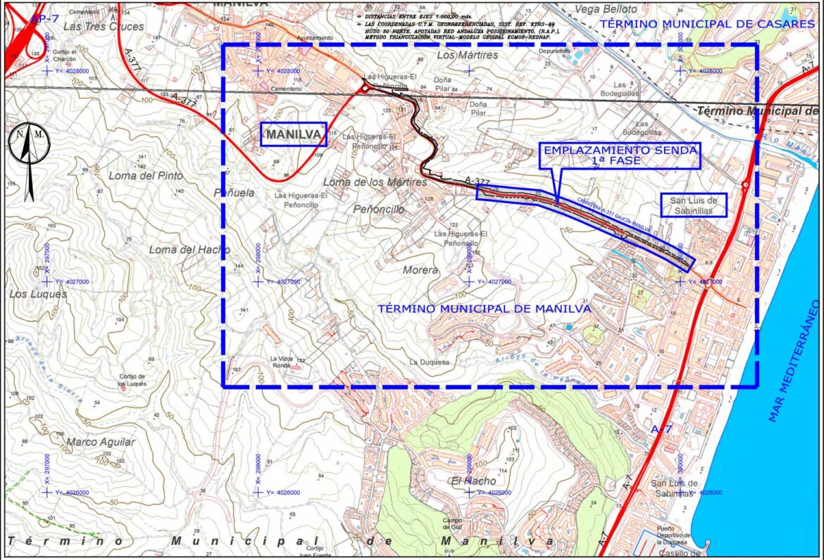 La Diputación de Málaga destina 1.317.527,22 euros a la primera fase de una senda peatonal en la carretera A-377, entre Manilva y su barriada costera de San Luis de Sabinillas, que tendrá una longitud de un kilómetro. Este sendero transcurrirá paralelo a la carretera y tiene como objetivo potenciar los itinerarios peatonales desde el núcleo de la población y las urbanizaciones hacia uno de los espacios naturales más significativos del municipio, como son sus playas.