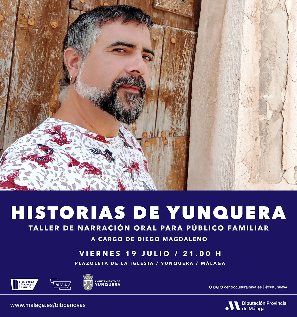 El taller de Narración Oral realizará varias sesiones en el municipio de Yunquera. El viernes 19 de julio, a las 21.00 horas, la Plazoleta de la Iglesia acogerá la actividad ‘Historias de Yunquera’, para todos los públicos, a cargo de Diego Magdaleno. Se narrarán cuentos basados en la historia local del municipio. Los relatos se conformarán con los recuerdos que los yunqueranos faciliten para el espectáculo.
