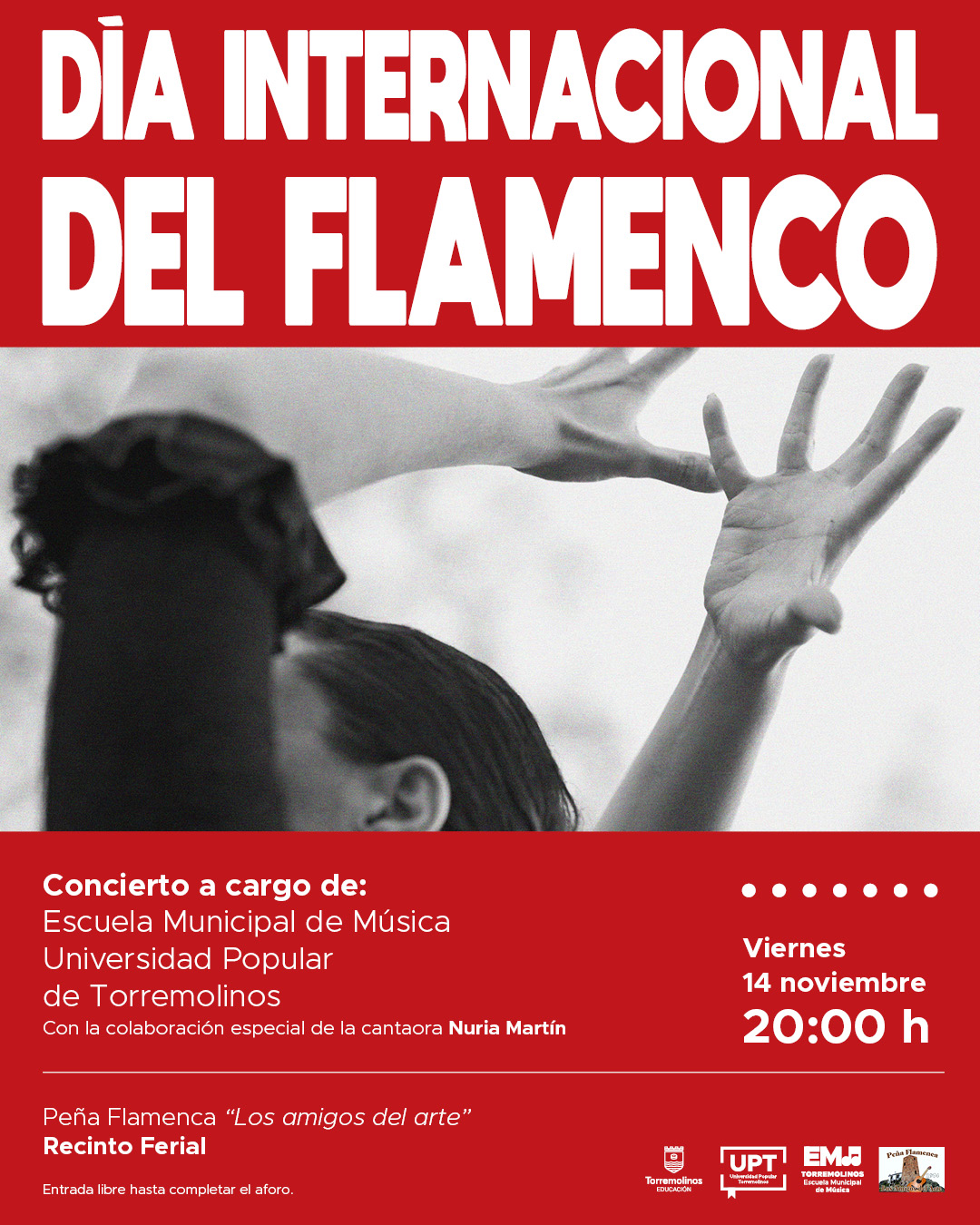 El profesor de guitarra Jaime Torres y el profesor de baile flamenco de la Universidad Popular de Torremolinos Fermín de Mora, ofrecerán un espectáculo en el que también participará el alumnado de ambos centros educativos y que contará con la colaboración especial de la cantaora malagueña Nuria Martín. Alumnado y público podrán disfrutar así de este arte considerado Patrimonio Cultural Inmaterial de la Humanidad.