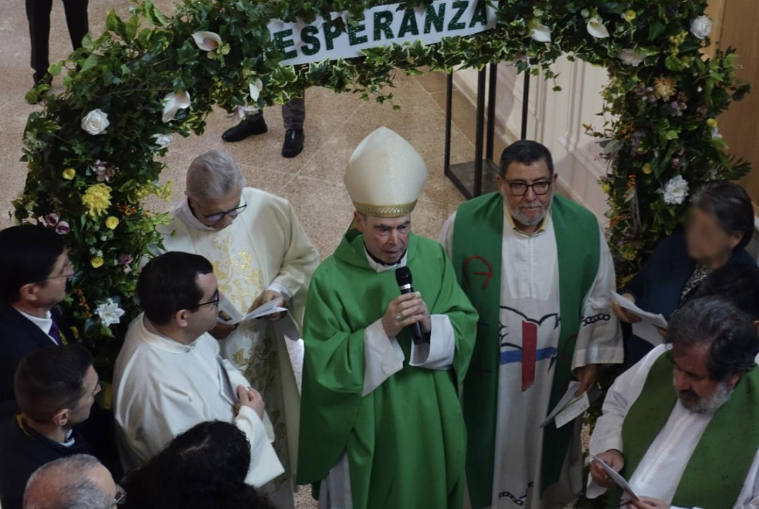 Pedro Fernández Alejo cuenta que «en los talleres del Centro Penitenciario, los internos prepararon un arco metálico que luego fue conveniente adornado con flores y ramas por los voluntarios con el rótulo de “esperanza”. Esta escenografía motivó la primera parte de la celebración donde el Sr. Obispo bendijo la “puerta de la esperanza”, orando todos con el salmo penitencial (50) y rezando la oración del Jubileo. A continuación, se inició la procesión con el Obispo, capellanes, sacerdotes, voluntarios e internos al son del canto de entrada».