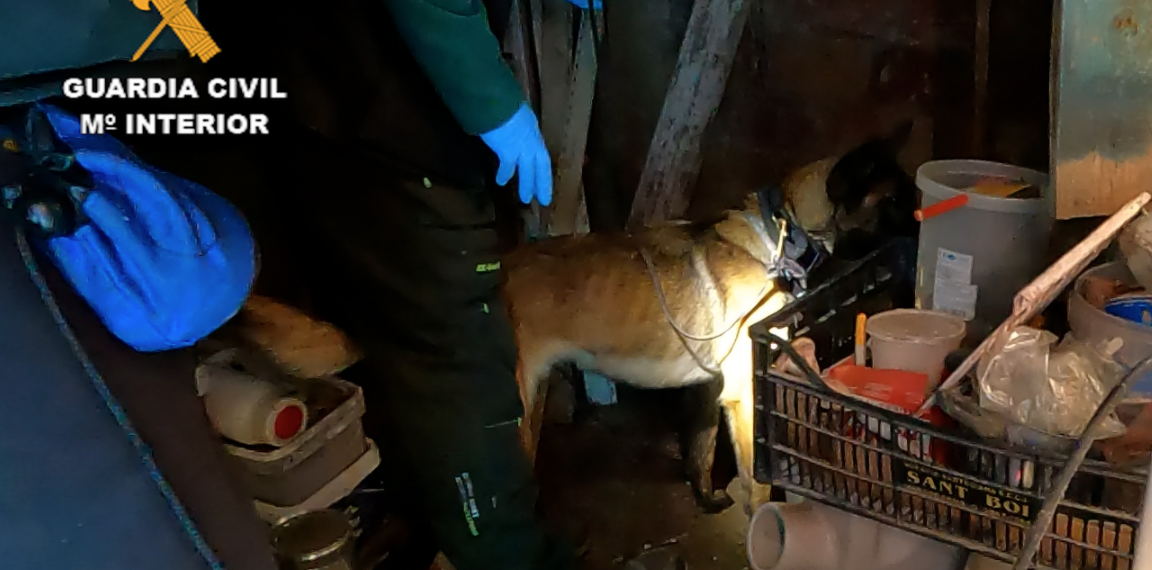 Canes del Servicio Cinológico de la Guardia Civil especializados en la detección de restos biológicos y en la localización de restos cadavéricos marcaron un punto en un cobertizo de una finca de Olesa de Montserrat en cuyo subsuelo fueron posteriormente hallados los restos de una mujer con signos de violencia