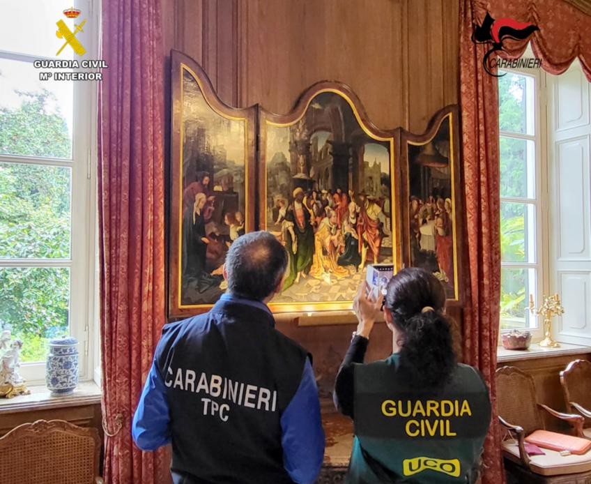 Tras conocer que más de 90 obras habían sido exportadas desde Marbella hacia Italia, utilizando los servicios de una empresa de transporte no especializado en este tipo de objetos, se compartieron las imágenes con Carabinieri. Los agentes italianos confirmaron que muchas de las obras se encontraban en la misma casa donde fue localizado el retablo, así como en galerías de arte y domicilios particulares italianos en Génova y Milán, y otras ya vendidas y exportadas desde Italia a otros países.