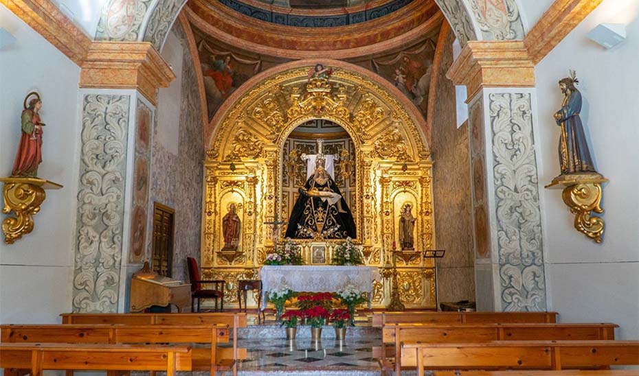 Por otro lado, el templo alberga en su interior un programa pictórico barroco de gran calidad realizado por autores no documentados pertenecientes a la escuela granadina, conformada por el influjo de Alonso Cano. La serie de bienes muebles vinculados aportan relevancia al inmueble, destacando el grupo escultórico de las Angustias, atribuido a José Navas-Parejo y Aurelio López Azaustre, además del retablo, trazado por Fernando Prini Betés, o las piezas de orfebrería del siglo XIX labradas por el platero malagueño Miguel Orfila y por la Real Fábrica de Platería Martínez de Madrid.