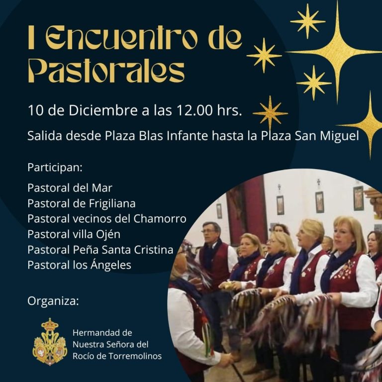 El Encuentro de Pastorales organizado por la Hermandad del Rocío de Torremolinos tendrá lugar en la Plaza San Miguel a las 13:00 horas. Previamente, a las 12:00 horas se realizará un pasacalle desde el ayuntamiento hasta la Plaza San Miguel recorriendo distintas calles del municipio. En este encuentro participarán las pastorales de Frigiliana, Vecinos del Chamorro, Villa Ojén, Peña Santa Cristina y Los Ángeles.