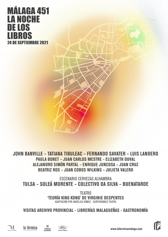 El centro de cultura contemporánea de la Diputación de Málaga, La Térmica, celebrará su festival literario ‘Málaga 451: La Noche de los Libros’ el próximo 24 de septiembre bajo la actual normativa sanitaria y aforo limitado. El evento contará con diferentes espacios con entrada libre hasta completar aforo y el escenario Cervezas Alhambra bajo venta de entradas a beneficio de la librería Proteo, como apoyo tras el incendio de su local el pasado mes de mayo.
