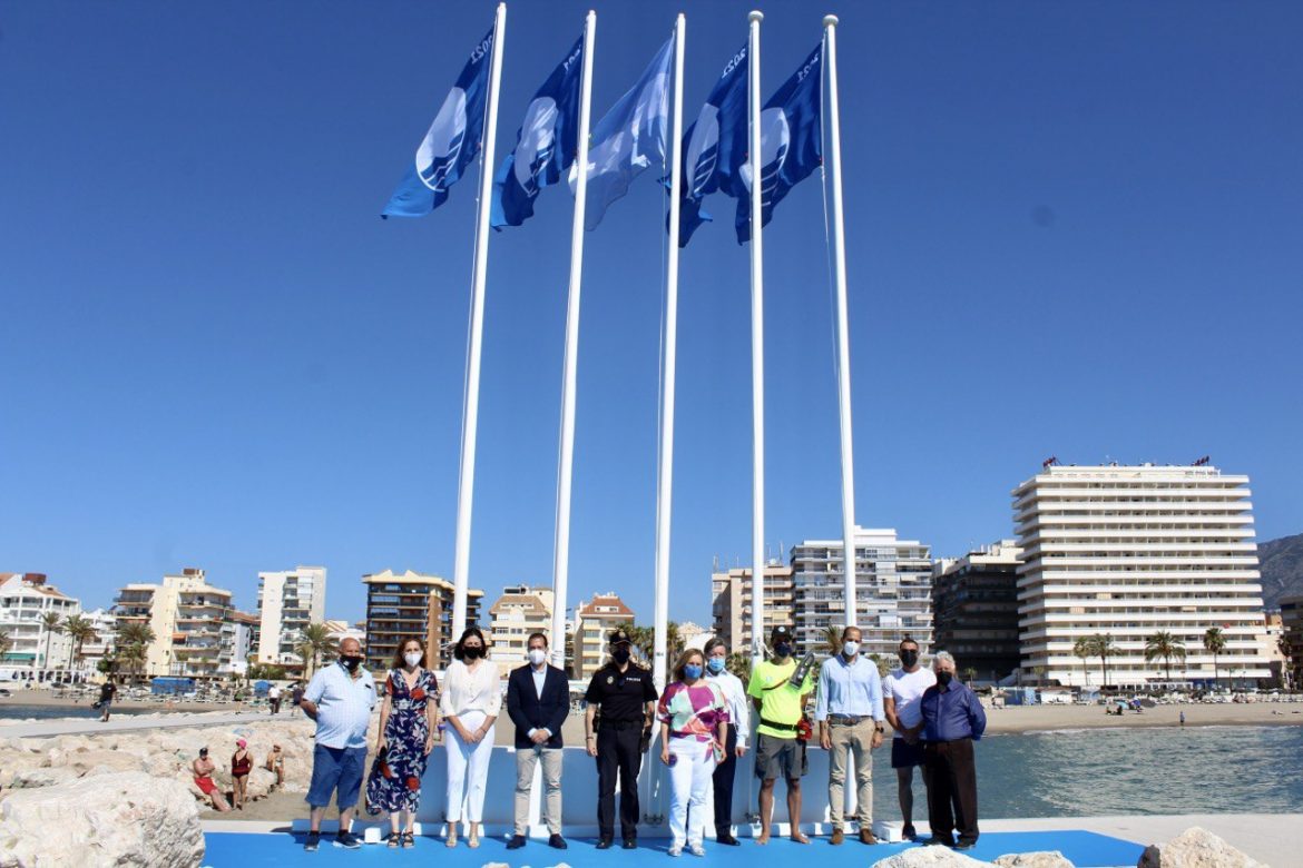 Fuengirola tiene ya las cuatro Banderas Azules que certifican la calidad de los servicios y el excelente estado de todo su litoral ondeando en las cuatro playas de la ciudad. La alcaldesa Ana Mula ha izado hoy estas enseñas junto con el presidente de la Federación Española de Empresarios de Playas, Norberto del Castillo, el intendente jefe de la Policía Local de la localidad, Antonio Hernández, y el coordinador del servicio de Salvamento y Socorrismo, Óscar Porras, en un acto que ha tenido lugar en el espigón de la playa de San Francisco. Es el segundo año consecutivo que estas distinciones internacionales lucen en todos los arenales de la ciudad.
