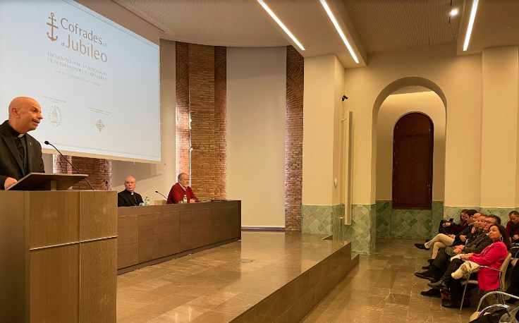 Tras las dos mesas redondas tuvo lugar una ponencia titulada «Cómo afrontar el Jubileo desde nuestra hermandad. Una visión práctica», impartida por Alejandro Cerezo, hermano mayor de la Archicofradía de los Dolores de San Juan.