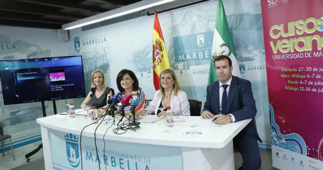 Los Cursos de Verano de la Universidad de Málaga (UMA) regresan a Marbella del 27 al 30 de junio con un programa de calidad, impartido por casi medio centenar de ponentes, que incluirá una conferencia magistral sobre geopolítica de la ex ministra de Asuntos Exteriores Ana Palacio. La directora general de Cultura, Carmen Díaz, ha presentado esta mañana la iniciativa junto a la coordinadora académica de investigación y la vicerrectora adjunta de Infraestructura Científica de la UMA, Antonia Infantes y María Ángeles Real, respectivamente, y el representante del Banco Santander, José Enrique Fernández. Díaz ha señalado que “nuestra localidad es el lugar idóneo para albergar una propuesta que se aleja del rigor del curso académico reglado y ofrece un espacio de debate abierto, riguroso e intelectual que invita a una reflexión sobre un mundo de cambios asombrosos y pocas certezas” y ha agradecido a la institución “que desde el año 2008 haya apostado por el municipio para seguir desarrollando su formación”.