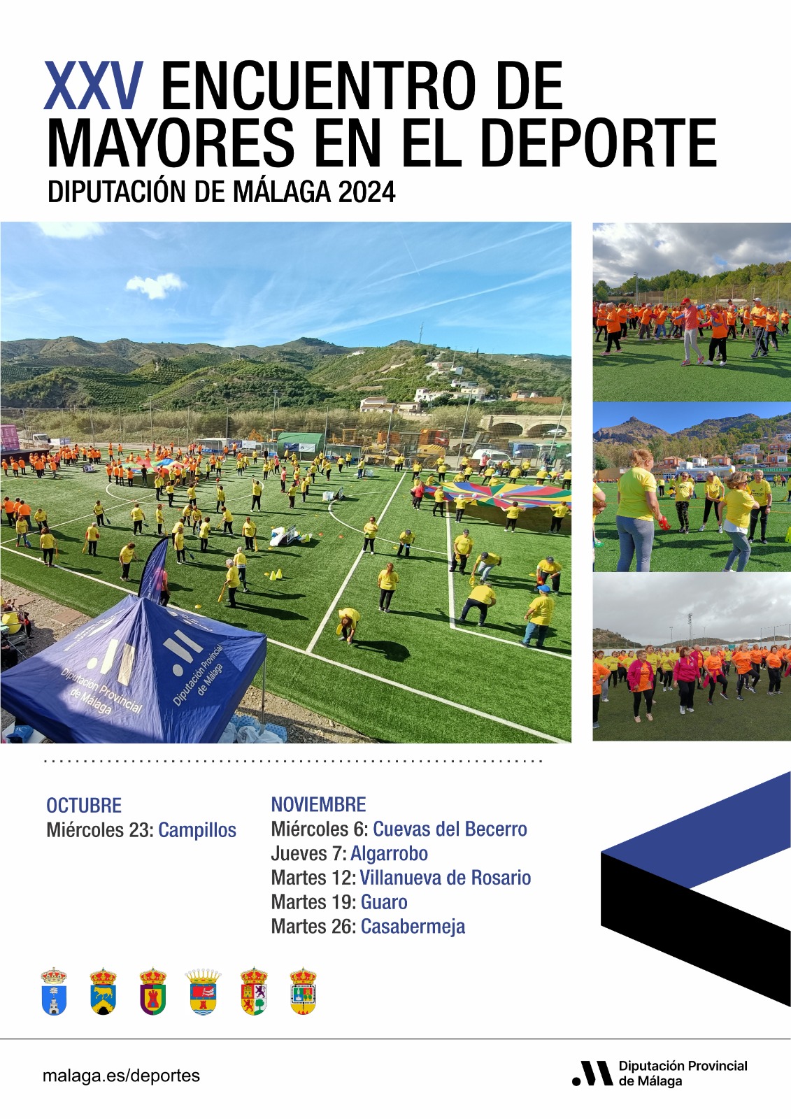 Se celebrarán durante los meses de octubre y noviembre en Campillos, Cuevas del Becerro, Algarrobo, Villanueva del Rosario, Guaro y Casabermeja Juan Rosas ha explicado que el objetivo de estos encuentros es fomentar la convivencia y el envejecimiento activo a través del deporte Ha recordado que la Diputación trabaja para mejorar la calidad de vida de las personas mayores de la provincia a través de una delegación específica y de programas transversales que implican a todas las áreas