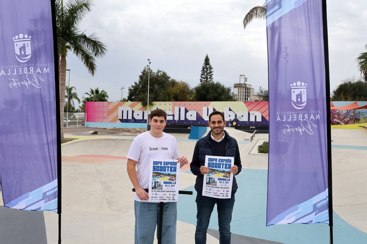 El Skatepark La Florida será escenario este sábado, 15 de noviembre, a partir de las 10.00 horas, de la primera edición de la Copa de España de Scooter Freestyle, una competición que reunirá en su estreno a 40 de los mejores ‘riders’ del país. El concejal de Deportes, Lisandro Vieytes, ha subrayado durante la presentación que esta cita que “supondrá un importante impulso de esta disciplina y del deporte juvenil en Marbella”. El edil ha explicado que este evento “consolida a la ciudad como referencia nacional en deportes urbanos”. “Queremos seguir impulsando modalidades deportivas emergentes que conectan con los jóvenes y fomentan un estilo de vida activo”, ha señalado Vieytes, quien ha estado acompañado por Antonio Fernández, del club Team Rider Marbella.