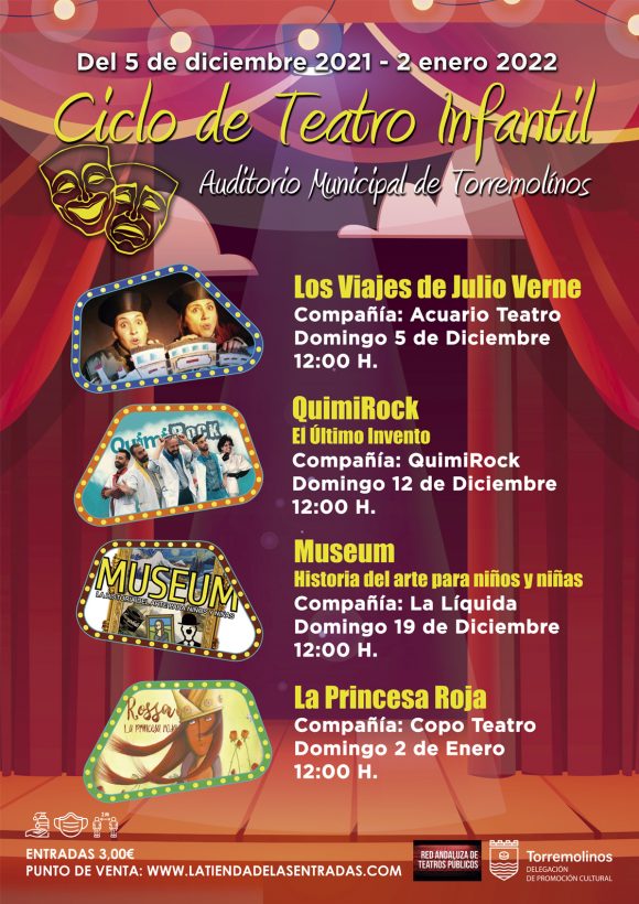 Con la Navidad a la vuelta de la esquina, el área de Cultura del Ayuntamiento de Torremolinos recupera el Ciclo de Teatro Infantil, una propuesta cultural dirigida a toda la familia que llevará cuatro espectáculos al Auditorio Municipal durante diciembre y enero.