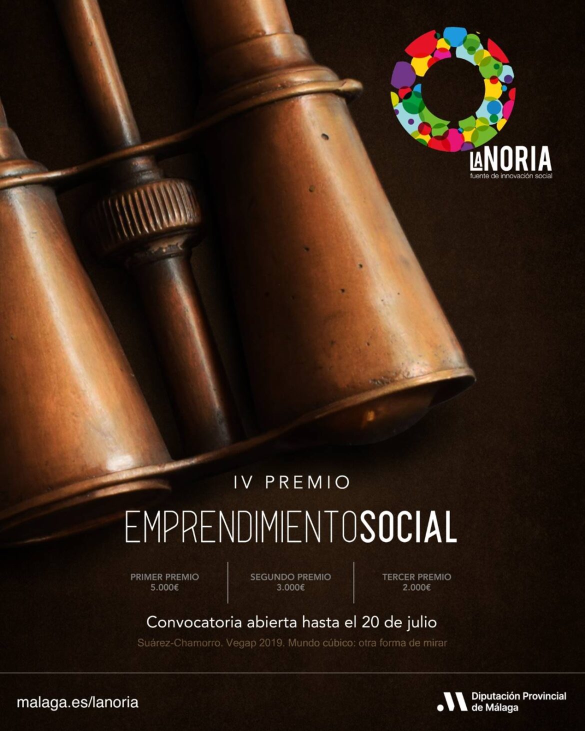 La Diputación de Málaga convoca el IV Premio de Emprendimiento Social La Noria. Las iniciativas que deseen presentar su candidatura tendrán de plazo hasta el 20 de julio.Este premio tiene como objetivo reconocer iniciativas que además de reportar ganancias económicas, tengan impacto social, dando respuesta a retos tanto ambientales, culturales, como de desarrollo rural, en definitiva, retos que afectan de forma directa a la ciudadanía Está formado por tres premios que suman un total de 10.000 euros, repartidos entre el primer premio de 5.000 euros, el segundo de 3.000 euros y el tercer premio de 2.000 euros.Esta año se ha llevado a cabo una modificación en las bases, no existiendo años mínimos de constituciónde la empresa, por tanto, cualquier empresa surgida durante este mismo año puede ser candidata al premio.