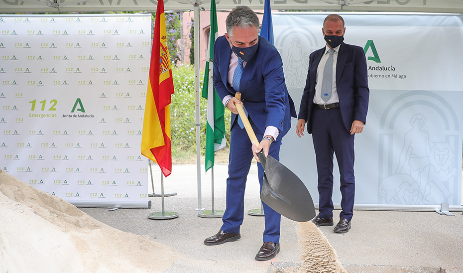 El consejero de la Presidencia, Administración Pública e Interior de la Junta de Andalucía, Elías Bendodo, ha asistido en la localidad malagueña de Benahavís al acto de colocación de la primera piedra de la nueva base del Grupo de Emergencias de Andalucía (GREA), que dará una mayor cobertura al litoral andaluz y que viene a mejorar el sistema de respuesta en materia de seguridad y coordinación de emergencias en Andalucía.