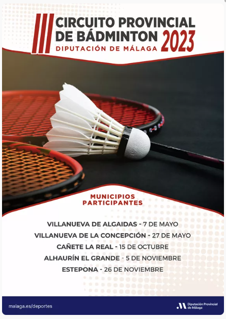Cerca de 500 deportistas participarán en el III Circuito Provincial de Bádminton, organizado por la Diputación de Málaga y la Federación Andaluza de Bádminton a través de la delegación malagueña, que arrancará el 7 de mayo en Villanueva de Algaidas y continuará en Villanueva de la Concepción, Cañete la Real, Alhaurín el Grande y Estepona.