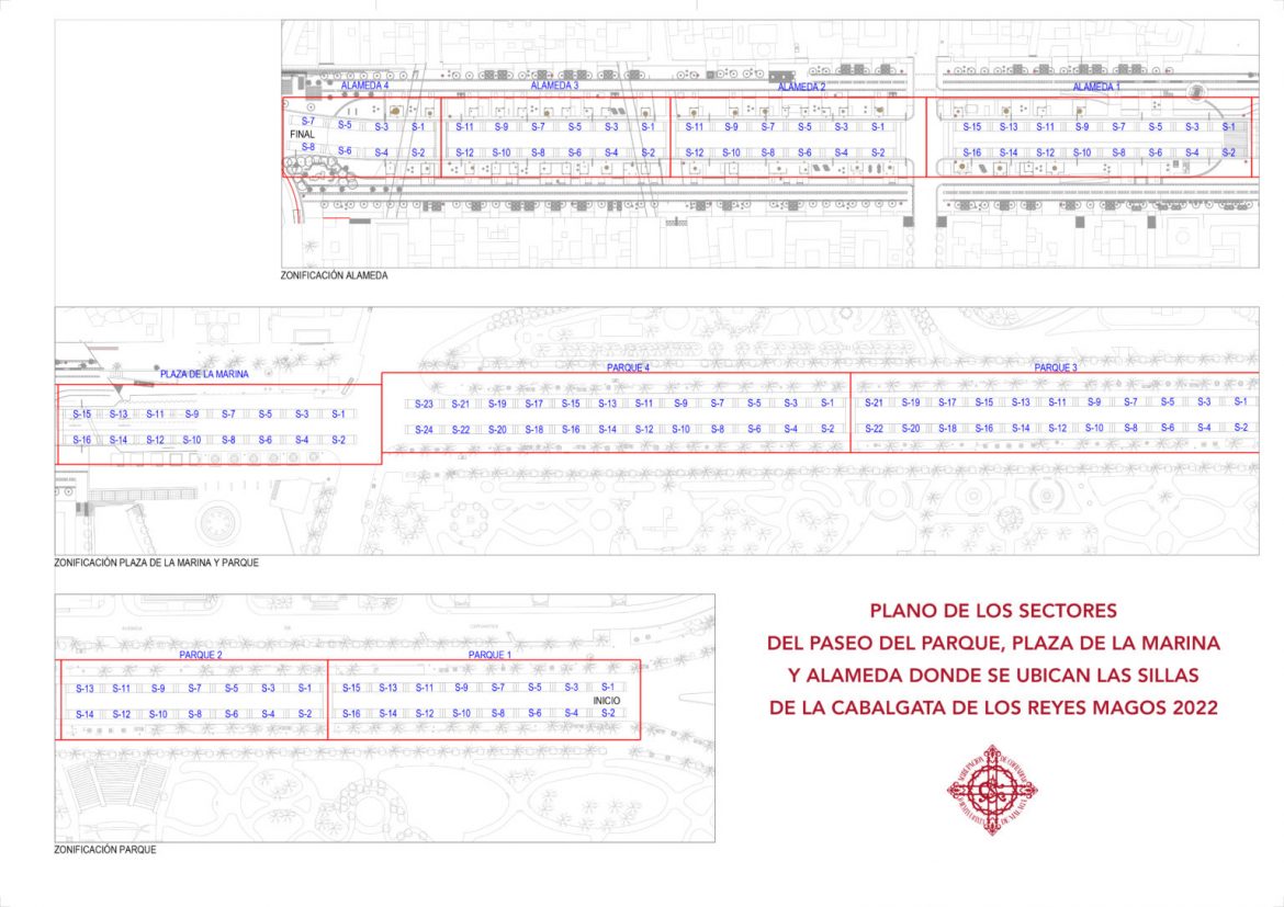 Las zonas establecidas para la colocación y adquisición de las sillas por donde pasará la comitiva real son Paseo del Parque (inicio del cortejo), Plaza de la Marina y Alameda Principal.