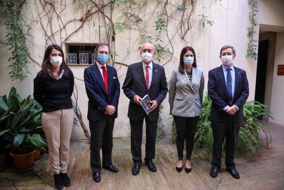 El alcalde de Málaga, Francisco de la Torre, junto a la concejala de Cultura, Noelia Losada; el director de la Fundación Santander, Borja Baselga; la responsable de Artes Plásticas y Espacios Museísticos de la Fundación Unicaja, Emilia Garrido; el presidente de la Fundación Sando, patrocinadora del museo, José Luis Sánchez Domínguez; y el director de la pinacoteca, Elías de Mateo, ha presentado esta mañana una nueva exposición temporal bajo el título ‘Banqueros y Empresarios. Retratos de Félix Revello de Toro’.