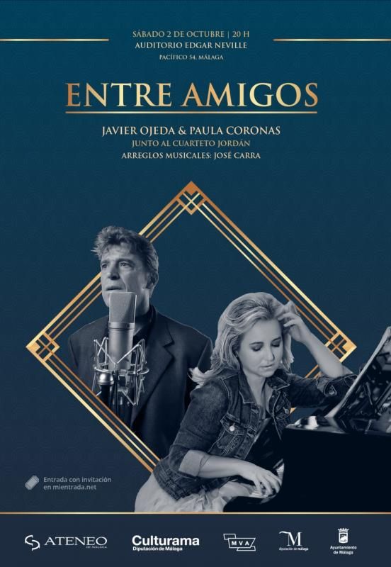 El auditorio Edgar Neville de la Diputación de Málaga (c/Pacífico, 54), acogerá el próximo sábado, 2 de octubre, a las 20:00 horas, el espectáculo ‘Entre Amigos’ liderado por el cantante Javier Ojeda.