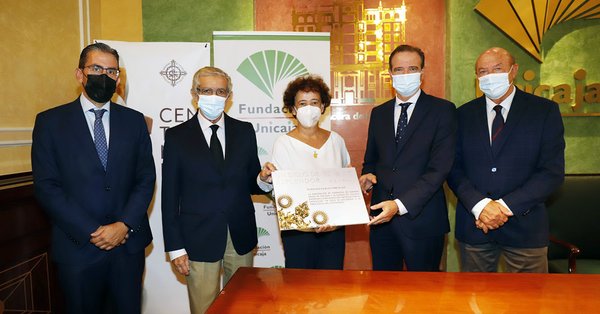 Tras su clausura, “Un Siglo de esplendor” ha recaudado 55.200 euros que, en un acto en la sede de la Fundación Unicaja, entregaban el presidente de la Fundación Unicaja, Braulio Medel; el presidente de la Agrupación de Cofradías, Pablo Atencia y su vicepresidente, José Carretín; a la responsable de la Obra Social del Centenario, María del Carmen Ledesma.