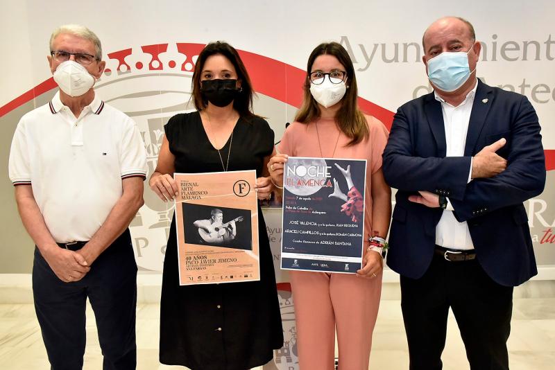 El esteponero Paco Javier Jimeno celebra sus ‘40 años’ como guitarrista en un concierto que tendrá lugar en Antequera el próximo 6 de agosto, dentro de la programación de la VII Bienal de Arte Flamenco de Málaga, según ha anunciado esta mañana la vicepresidenta segunda de la Diputación y consejera delegada de Turismo Costa del Sol, Margarita del Cid, junto al alcalde de Antequera, Manuel Barón.