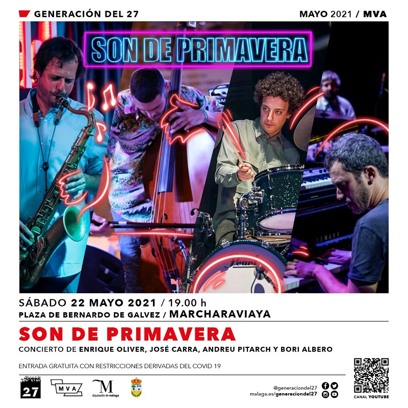 El Centro del 27 de la Diputación de Málaga pone en marcha una nueva temporada del ciclo de conciertos al aire libre Son de Primavera. La banda de jazz Enrique Oliver Quartet será la encargada de inaugurar el ciclo en la Plaza Bernardo de Gálvez de Macharaviaya, que se convertirá en un escenario improvisado mañana sábado, 22 de mayo, a partir de las 19.00 horas. La entrada es libre hasta completar aforo.