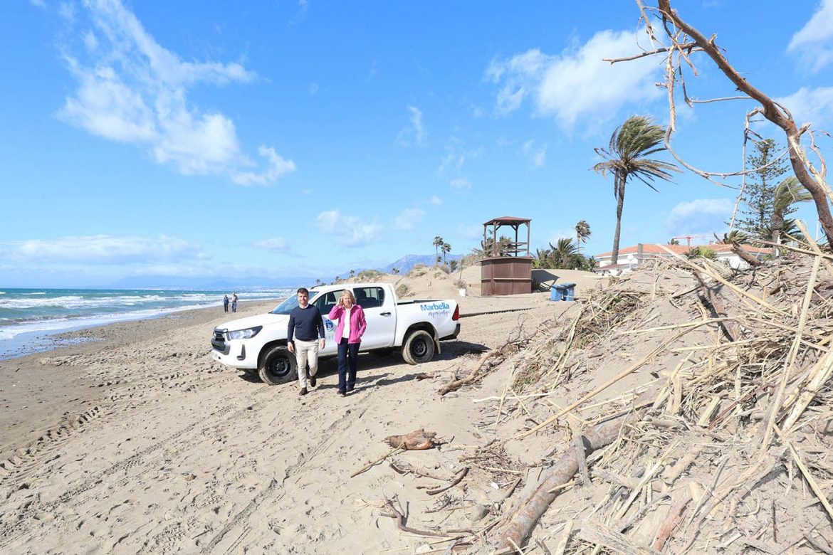 El Ayuntamiento de Marbella ha activado un plan urgente de recuperación del litoral, con un coste previsto de más de 400.000 euros, tras los graves daños ocasionados por los últimos temporales y las lluvias persistentes registradas en las últimas semanas. La alcaldesa, Ángeles Muñoz, que ha visitado las zonas más afectadas, ha destacado que la ciudad “está afrontando uno de los inviernos más duros de los últimos años no solo por las lluvias, sino también por el viento y el fuerte oleaje, lo que está provocando importantes pérdidas de arena y desperfectos en la práctica totalidad de las playas del término municipal”. “Hemos tenido afecciones en áreas dunares, en paseos marítimos y en accesos, además de una importante acumulación de cañas”.
