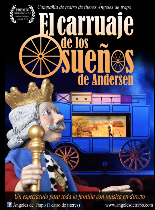 Basada en los textos de Hans Christian Andersen, se trata de un singular teatro de títeres sobre ruedas que revive la tradición del teatro itinerante que recorría los pueblos. La Escuela de Arte San Telmo de Málaga se ha encargado de construir parte de los personajes, escenografías y atrezzos de esta pieza. Cuatro cuentos llenos de diversión y emoción que sorprenderán al público. Para ello, los titiriteros utilizarán cuatro técnicas diferentes y representarán la obra en un carruaje a escala real. Un espectáculo donde el público podrá deleitarse con música en directo y dejarse llevar por la magia de los cuentos clásicos que a todos nos contaron cuando éramos niños.