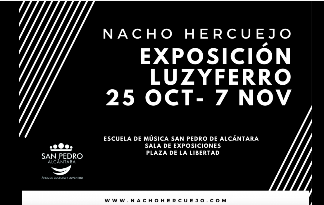 El Ayuntamiento de Marbella informa de que el Centro Cultural San Pedro acogerá esta tarde, a las 19.30 horas, la inauguración de la exposición ‘Luzyferro’, de Nacho Hercuejo, que podrá visitarse hasta el 7 de noviembre. Esta exposición es una muestra del trabajo realizado los últimos diez años por el artista. Autodidacta e irrespetuoso con las leyes establecidas en el mundo del arte, Hercuejo puede, por ejemplo, mezclar pintura acrílica con sanguinas y carboncillo, siendo el resultado lo importante para él.