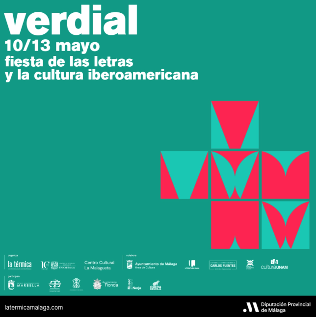 Marbella se ha sumado al Festival Verdial, Fiesta de las Letras y de la Cultura Iberoamericana, con la programación de cuatro citas del 10 al 13 de mayo en la Biblioteca Central Fernando Alcalá y en el Hospital Real de la Misericordia. La directora general del ramo, Carmen Díaz, ha detallado que la iniciativa, organizada por la Diputación Provincial de Málaga, a través de La Térmica, y el Centro de Estudios Mexicanos de la Universidad Nacional Autónoma de México (UNAM-España), entre otras instituciones, reunirá en ambas instalaciones a creadores de ambas orillas del Atlántico, entre otros, a los mexicanos Eloy Urroz y Lydia Cacho y al venezolano Juan Carlos Méndez.