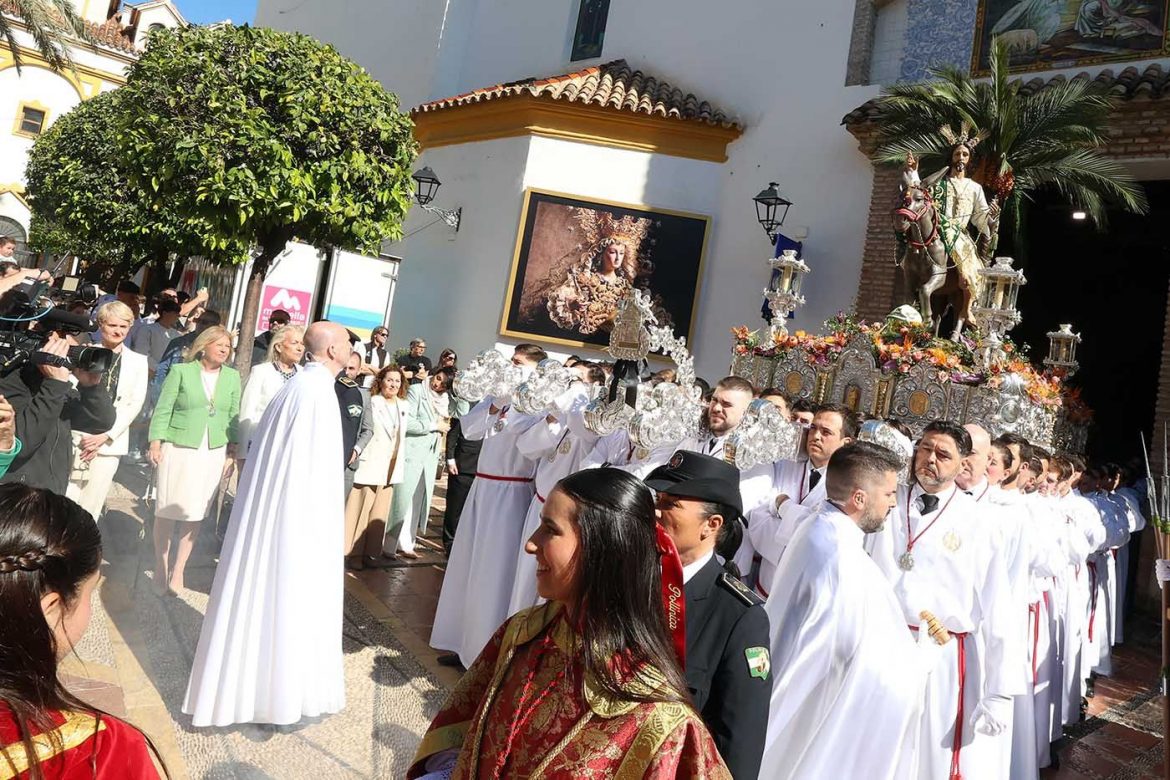 Marbella ha registrado una amplia afluencia de vecinos y visitantes este Domingo de Ramos con motivo de la salida procesional de la Pollinica, organizada por la Cofradía de Nuestro Padre Jesús de la Misericordia a su entrada en Jerusalén y María Santísima de la Paz y Esperanza. La procesión ha partido de la iglesia de Nuestra Señora de la Encarnación y ha contado con la presencia de la alcaldesa, Ángeles Muñoz, y otros miembros del Gobierno local.