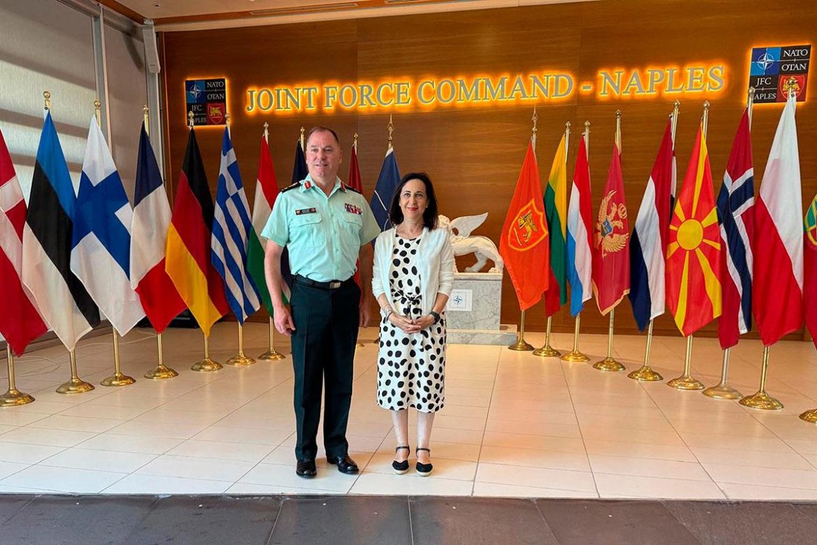 «OTAN puede contar con España», ha dicho con rotundidad Robles, durante su visita al Cuartel General de la Alianza ubicado en Nápoles, donde casi 80 españoles trabajan en distintas tareas operacionales para preservar la paz y la seguridad en los países miembros.