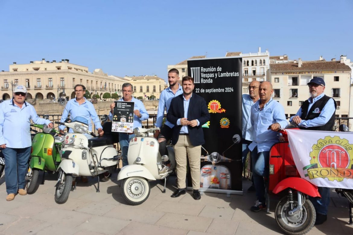 El concejal de Turismo Ángel Martínez y el presidente del Club de Vespas de Ronda, Juan Antonio Garrido, han presentado hoy la VIII edición de la concentración de motos Vespas y Lambretta que tendrá lugar este domingo 22 de septiembre en la ciudad y a la que está prevista que acudan más de 200 vehículos de estas emblemáticas marcas.