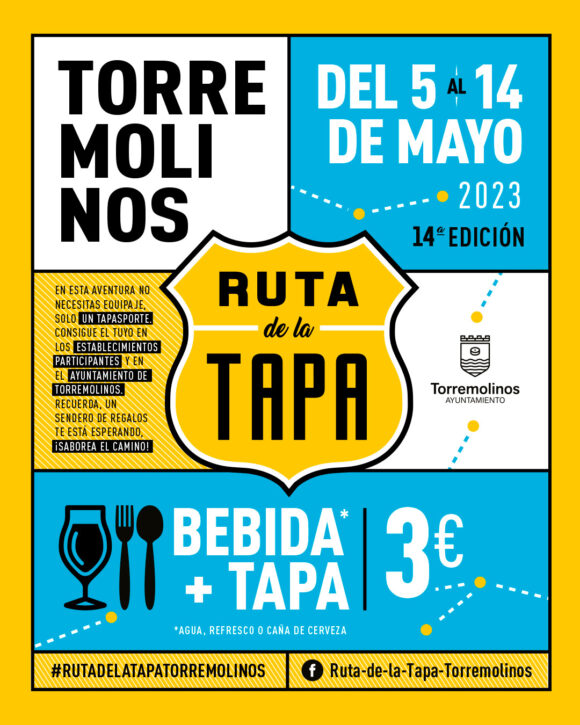 Este mes de mayo vuelve la ‘Ruta de la Tapa’ a Torremolinos del día 5 al 14, ambos inclusive. Esta es ya la decimocuarta edición, y en ella participan más de 50 establecimientos de restauración de Torremolinos divididos en cuatro zonas: la Carihuela/Bajondillo, El Calvario, Centro/Bajondillo y Playamar/Los Álamos. A un precio de 3 euros la caña de cerveza, vino, refresco o agua y la tapa, los participantes podrán degustar una variada gastronomía en los distintos bares y restaurantes adscritos.