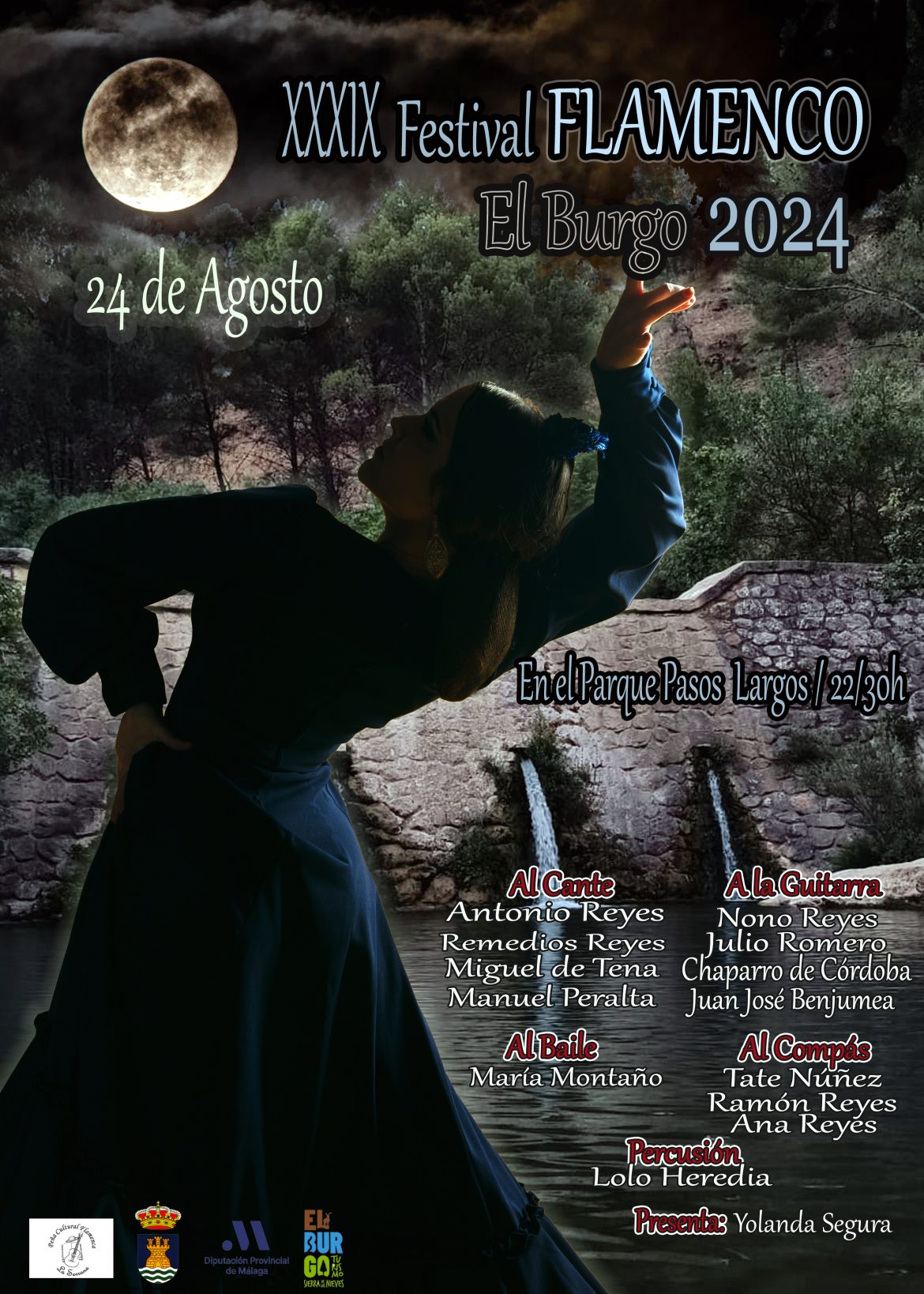 El Burgo celebrará este año su gran cita con el flamenco el 24 de agosto a partir de las diez y media de la noche en el parque Pasos Largos. Esta es ya la 39ª edición del Festival Flamenco de El Burgo, que organizan el ayuntamiento de la localidad y la peña flamenca La Serrana. Miguel de Tena, María Montaño y los hermanos Remedios y Antonio Reyes son los atractivos del cartel de este evento.