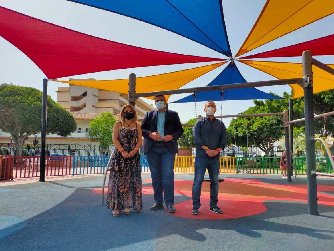 El gobierno local de Mijas ha impulsado la instalación de toldos en diferentes parques de los tres núcleos tales como la Butibamba en La Cala, el Parque del Agua y Canino en Las Lagunas o la Plaza Virgen de la Peña en Mijas Pueblo. El alcalde de Mijas, Josele González y los ediles de Parques y Jardines y Vía Pública, Laura Moreno y Nicolás Cruz respectivamente, han visitado esta mañana el parque situado en la Butibamba para comprobar “in situ” los trabajos acometidos en esta zona.
