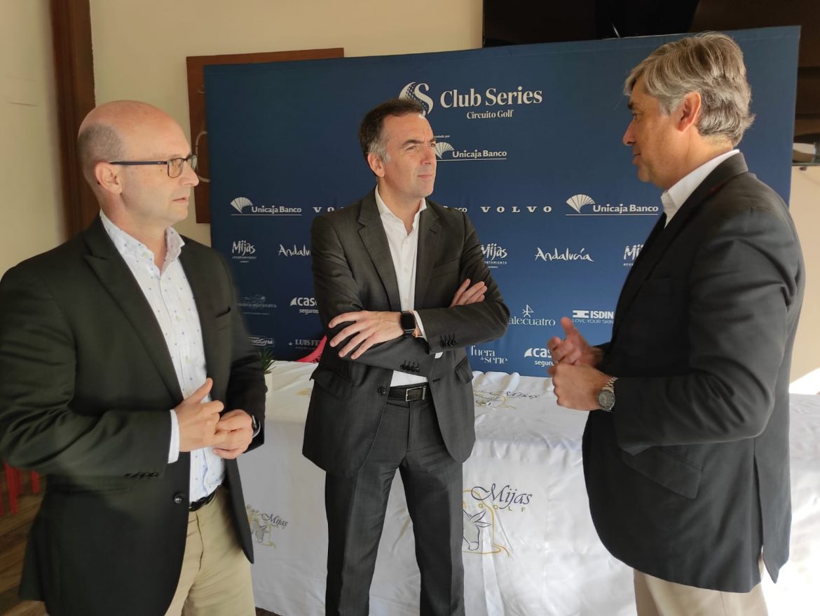 El edil de Turismo, José Carlos Martín, y el concejal de Deportes, Andrés Ruiz, han presentado esta mañana la final del Club Series de Golf que se llevará a cabo el próximo sábado 27 de noviembre en Mijas Golf. El torneo acogerá a alrededor de 100 jugadores que pondrán unificar la práctica de deporte con la diversión y ocio por el municipio. «Es una apuesta decidida por parte de nuestro municipio por el golf, una sinergia desde el área de Turismo y Deportes, porque se trata de una actividad que reúne las dos condicionantes, una actividad deportiva pero sobretodo uno de los segmentos turísticos más importantes de nuestro municipio. Porque significa desde el punto de vista de la ruptura de la estacionalidad por lo que significa también el tipo de turista que viene a visitar nuestros campos de golf «, apunta Martín.
