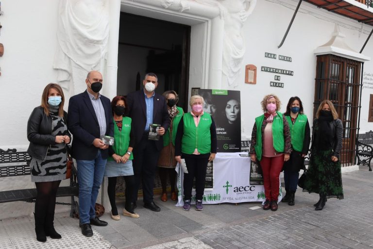 El alcalde de Mijas, Josele González, y el concejal de Servicios Sociales, Hipólito Zapico, así como las ediles Laura Moreno y Tamara Vera, han acompañado a las voluntarias de la mesa informativa situada en Casa Museo. Desde este punto de Mijas Pueblo, el regidor mijeño ha vuelto a reivindicar más fondos para la investigación «de una enfermedad de la que se detectan casi 300 casos diarios y que es una enfermedad muy real y muy cercana a todos nosotros. Desgraciadamente, muchos vecinos y vecinas de Mijas tienen alguien muy cercano padeciendo esta enfermedad y bajo esta campaña, la Asociación Contra el Cáncer nos enseña que no a todo el mundo le afecta igual esta enfermedad, ya por su género o por su condición económica», afirma el regidor mijeño, quien ha querido denunciar la situación de la atención primaria, «donde actualmente es muy difícil conseguir algo tan fundamental y rutinario como una analítica, complicando avanzar hacia una detección precoz de enfermedades como el cáncer».