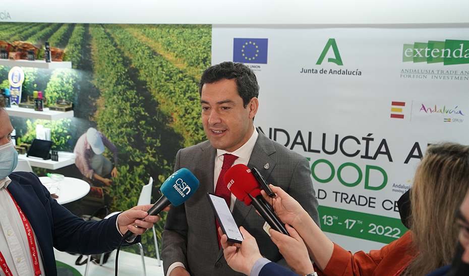 El presidente de la Junta de Andalucía, Juanma Moreno, ha visitado este domingo en Dubái la Feria Gulfood 2020, el mayor evento internacional que se celebra en Oriente Medio dedicado a la industria de la alimentación y el comercio, donde participan 39 empresas andaluzas. Durante el recorrido, se ha interesado por los diferentes mostradores de productos andaluces y españoles, como el de Accesur, Hutesa o el Grupo Ybarra, entre otros. Asimismo, ha mantenido una reunión con el principal importador de EAU (United Foods) donde ha ejercido de «comercial de Andalucía» para abrir puertas en estos mercados a más empresas andaluzas, gracias a la calidad de los productos y la seriedad de las empresas.