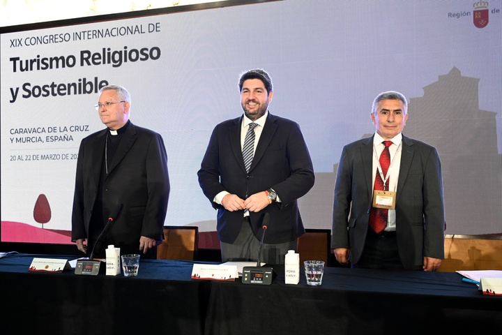 El presidente del Gobierno regional, Fernando López Miras, inauguró en Murcia el XIX Congreso Internacional de Turismo Religioso y Sostenible, que permite a la Región de Murcia “convertirse hasta el próximo miércoles en la capital mundial del turismo religioso, con Caravaca de la Cruz como estandarte”.