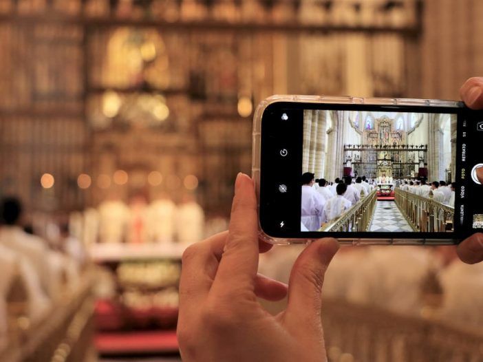 Aunque el tamaño de las cámaras y los mismos móviles permiten un uso sencillo, nunca se situará encima del altar ni del ambón. Es necesario tomar las medidas oportunas para que no interfieran en el desarrollo de la celebración ni en el seguimiento de la eucaristía por parte de la asamblea que vive la celebración.