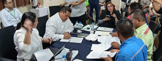 Con la finalidad de seguir el proceso de cumplimiento de las recomendaciones emitidas por la Comisión Interamericana de Derechos Humanos (CIDH), a través de su Informe de Fondo N° 401/21, para que se garantice el respeto a los Derechos de los Pueblos Indígenas y Fortalecer el Desarrollo Nacional, fue la reunión que se realizó entre el Estado y los Peticionarios que figuran en el caso N°12.717.