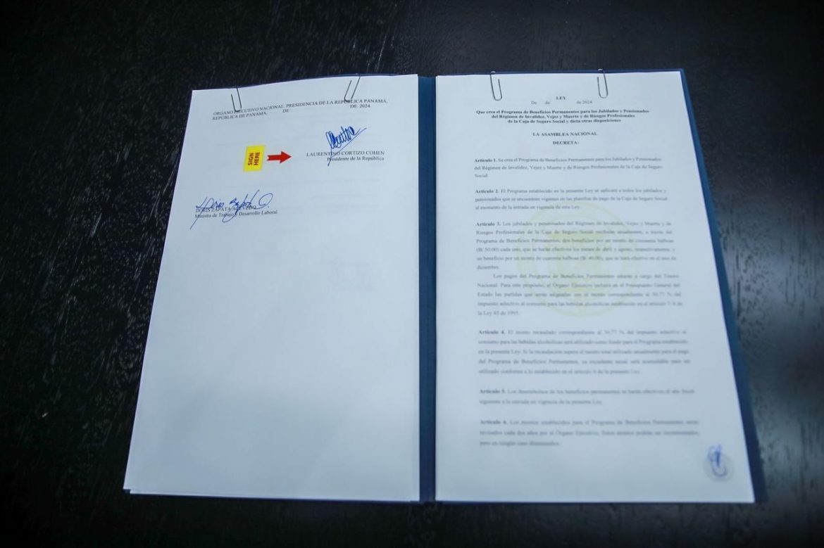 Cortizo Cohen manifestó su satisfacción al sancionar la Ley 438 de 14 de junio de 2024, y al mismo tiempo, su reconocimiento a aquellas personas que aportaron con su esfuerzo, talento y dedicación, al crecimiento del país y que hoy devengan montos muy bajos en sus pensiones y jubilaciones.