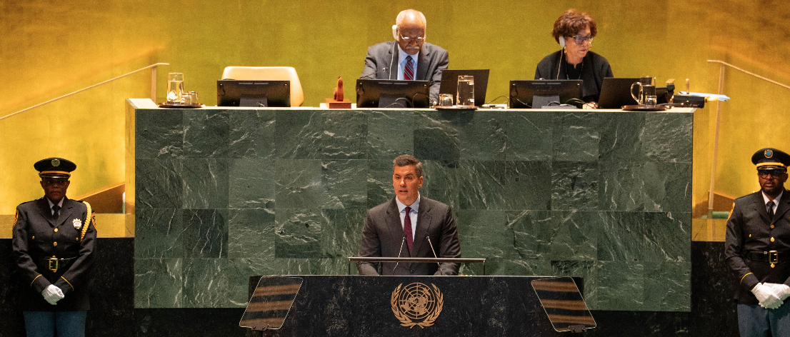 El presidente de la República del Paraguay, Santiago Peña, participó este martes como orador en la 79ª Sesión Plenaria Especial de la Asamblea General de las Naciones Unidas, donde reafirmó el compromiso del Paraguay con el multilateralismo y expuso la visión del país como una potencia intermedia comprometida con el desarrollo sostenible, la equidad y la paz internacional.
