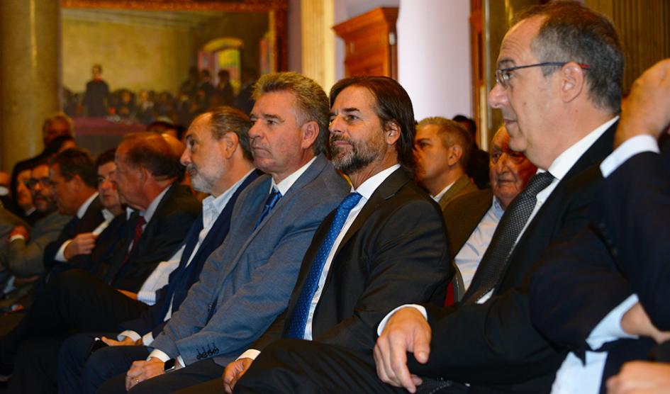 En el encuentro, desarrollado este martes 9 en el Palacio Legislativo, Lacalle Pou estuvo acompañado por la vicepresidenta de la República, Beatriz Argimón; el ministro de Trabajo, Pablo Mieres; el ministro interino de Ganadería, Juan Ignacio Buffa; el subsecretario de Ambiente, Gerardo Amarilla, e integrantes del directorio de CAF, encabezado por el presidente del organismo, Pablo Perdomo.
