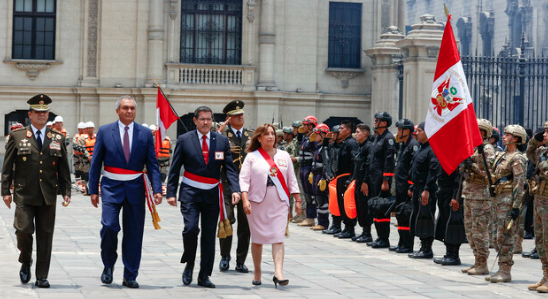 La ceremonia, realizada en el patio de honor de Palacio de Gobierno, contó con la participación del ministro de Defensa, Jorge Chávez Cresta, del presidente del Comando Conjunto de las Fuerzas Armadas, general Manuel Gómez de la Torre, y de los comandantes generales del Ejército, la Marina de Guerra, la Fuerza Aérea y la Policía Nacional.